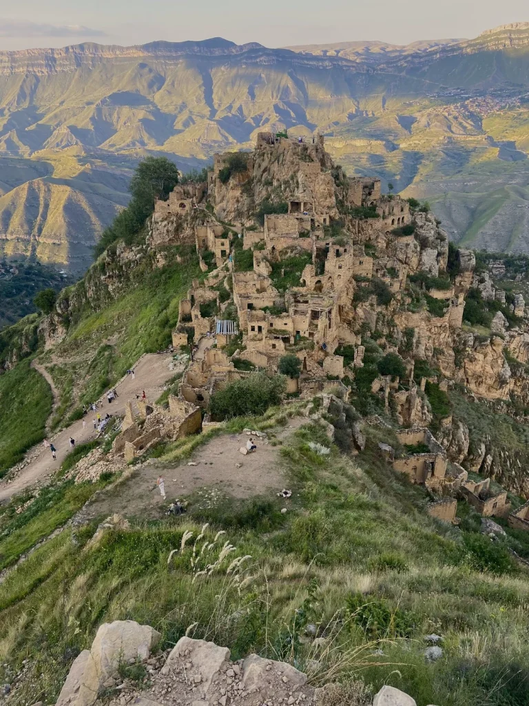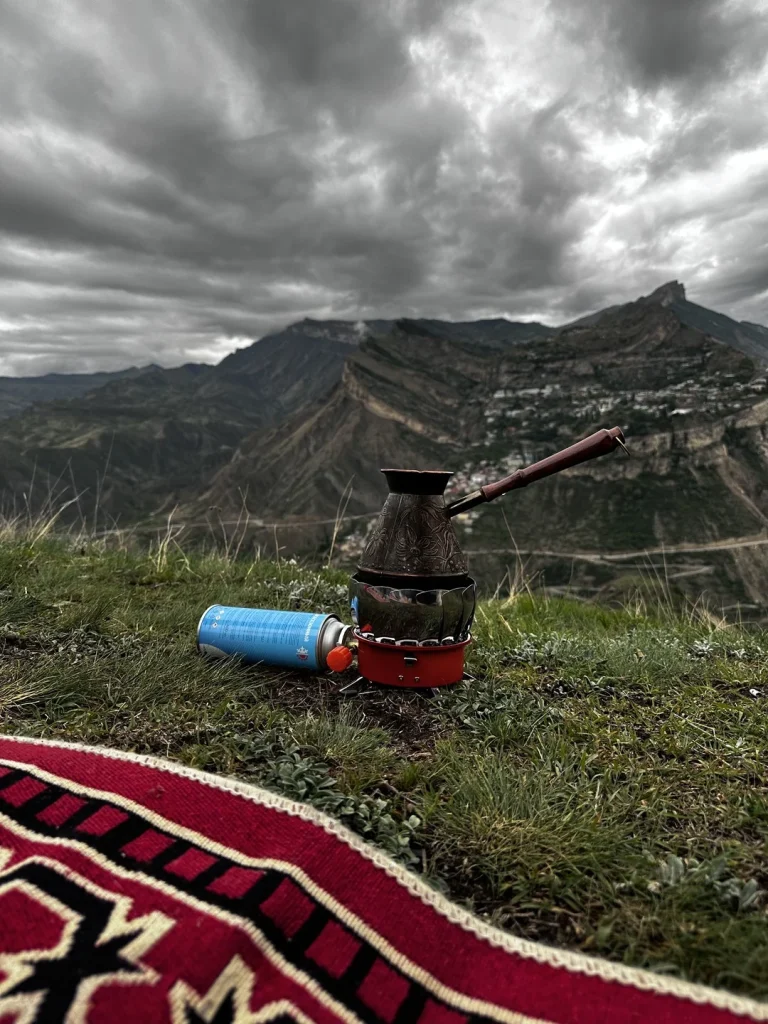 Пообедав, исследуем аул-призрак Гамсутль: когда-то здесь кипела жизнь, а сейчас не осталось ни одного жителя. Я снова сварю для вас кофе, а после поедем к Салтинскому водопаду — единственному подземному водопаду в Дагестане.