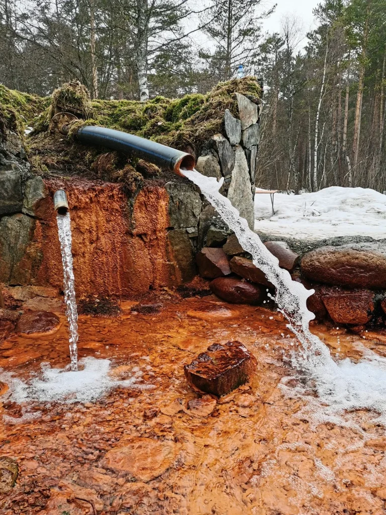 Посетим поляну Нарзанов у подножия вершины Чегет, где находятся минеральные источники. Камни здесь окрашены в яркий ржавый цвет из-за высокого содержания в воде железа. Ещё в ней содержатся магний, для укрепления нервной системы, натрий и калий, улучшающие состояние сердечной мышцы.