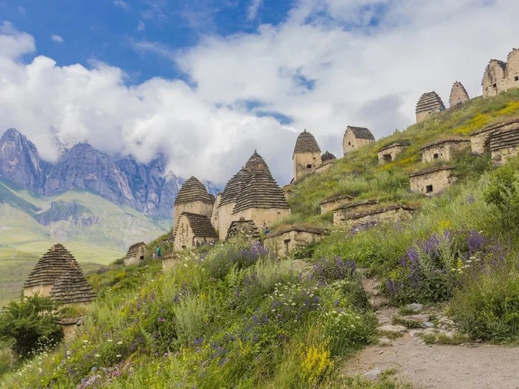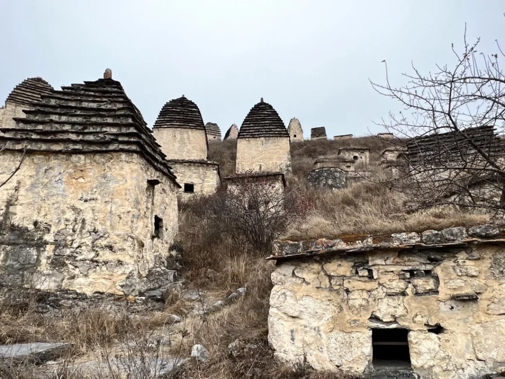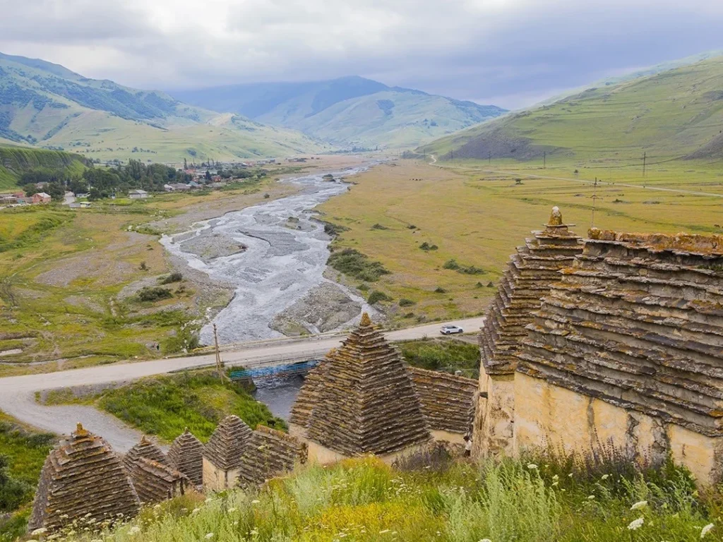 Вас ждёт визит в «город мёртвых» — некрополь Даргавс 4 века с погребальным комплексом из каменных склепов в 2 и 4 этажа, напоминающих маленькие домики, разбросанные по склону.