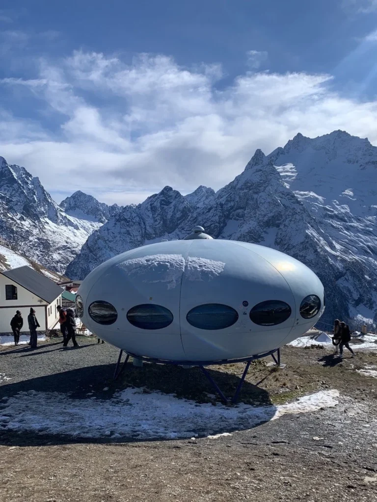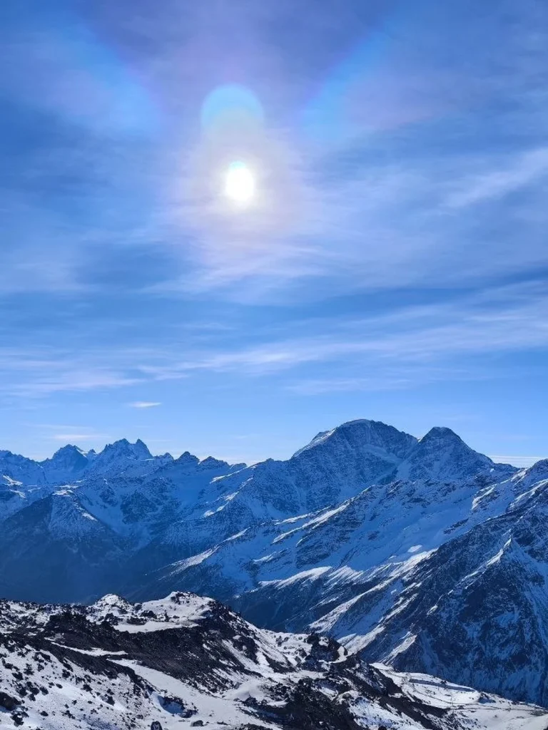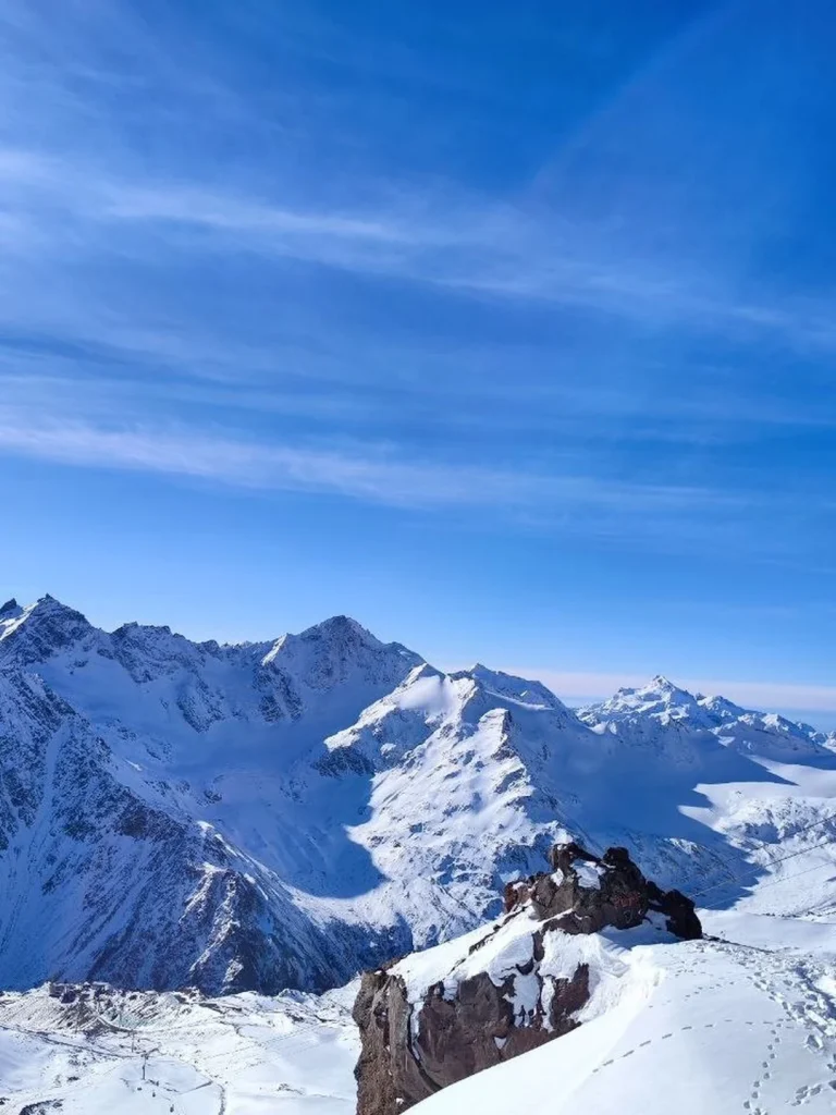Следующая точка маршрута — поляна Азау, самый высокий курорт в Приэльбрусье, откуда открываются головокружительные виды на гордые вершины.