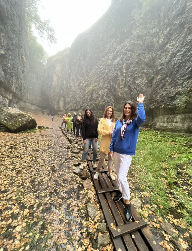 Затем отправимся к Чохским террасам — древним сооружениям горцев для выращивания зерновых, где выпьем ароматный кофе с видом на горы. Далее путь лежит к Салтинской теснине, где по узкой горной тропе между скалами мы дойдем до уникального подземного водопада высотой 20 метров, падающего через природный купол в пещеру.